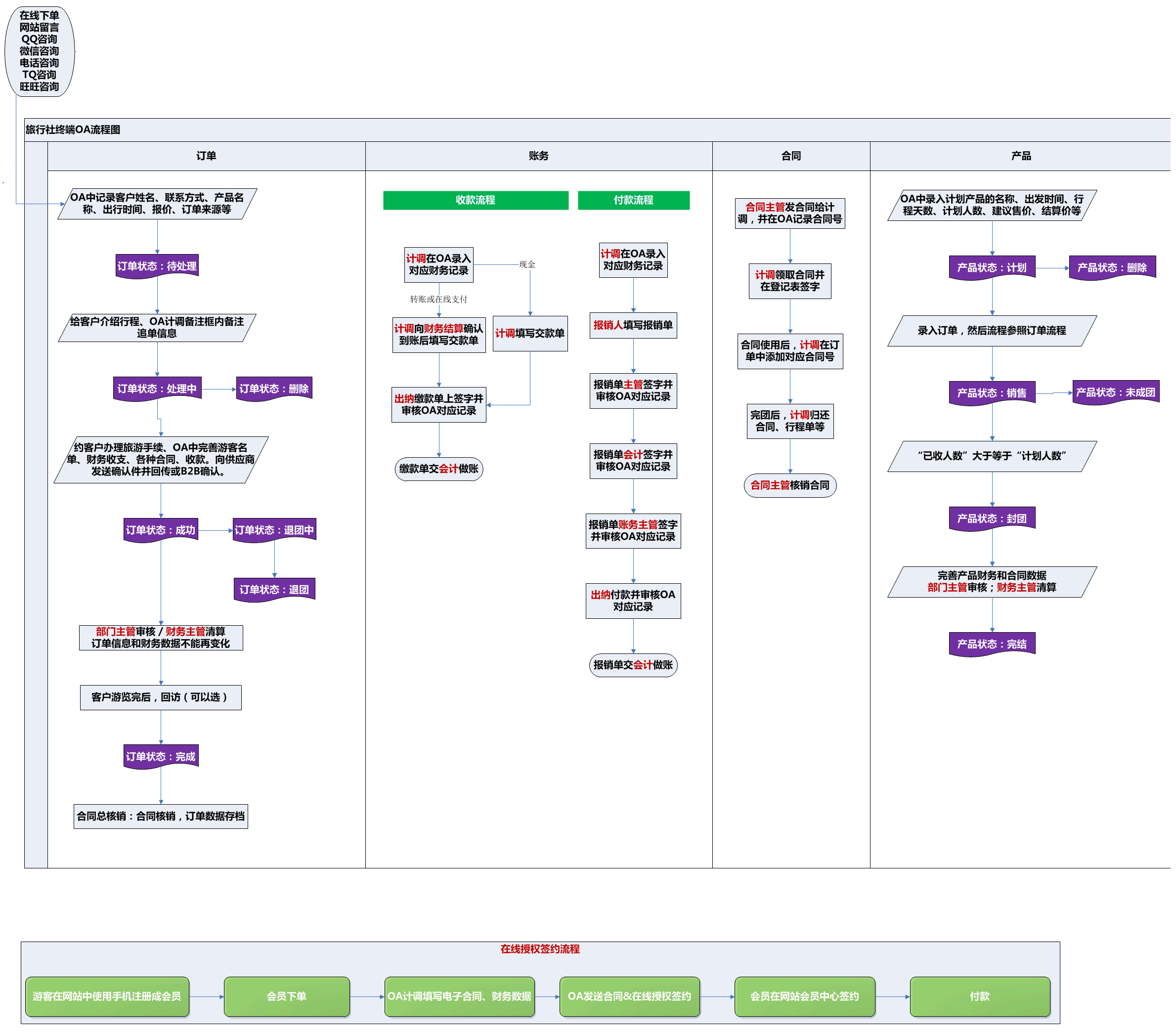 整套旅行社管理系統(tǒng)的管理主流程圖如下,具體運(yùn)用時(shí),可根據(jù)自己旅行社的特點(diǎn),自行調(diào)整流程。 點(diǎn)擊圖片可以瀏覽大圖。